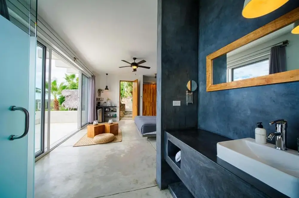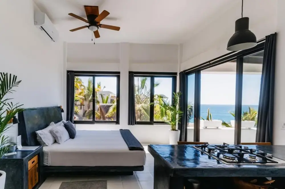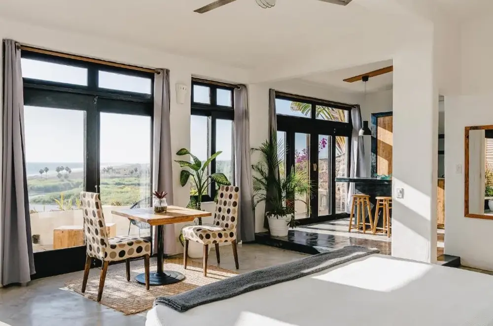 More information about Todos Santos Boutique HotelPuerto San Carlos Bay House & Tours offers a unique coastal retreat in San Carlos, Baja California, Mexico. Located along the Pacific coast, this property features a spacious second-floor studio suite with a large terrace providing panoramic ocean views. Guests can enjoy sunrise and sunset vistas from the private balcony while soaking in the tranquil ambiance of the seaside setting.