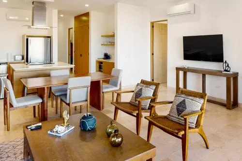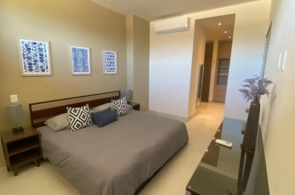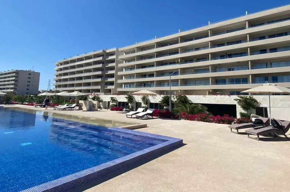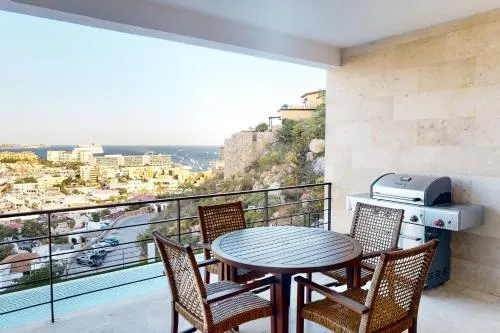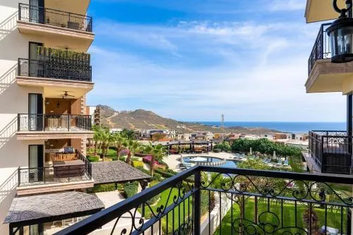 Plus d'informations sur Depto Perla a 5 mins de playa con alberca y wifiHébergement spacieux: Superbe condo 2BR Ocean View à Vista Vela II à Cabo San Lucas offre un appartement spacieux avec deux chambres et deux salles de bains. La propriété dispose d'un balcon avec une vue imprenable sur l'océan, assurant un séjour confortable. Amérités modernes: les clients apprécient le wifi gratuit, un centre de fitness et un jardin magnifiquement entretenu.